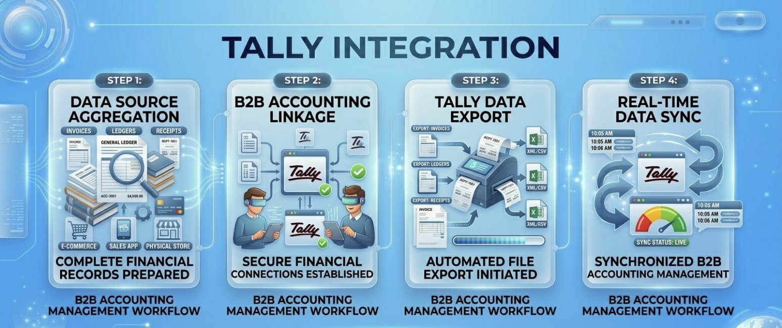 Boost your financial efficiency with Tally Integration, designed to make accounting seamless for B2B businesses. Export invoices, receipts, and ledgers directly from your order system into Tally, ensuring error-free and timely financial records.